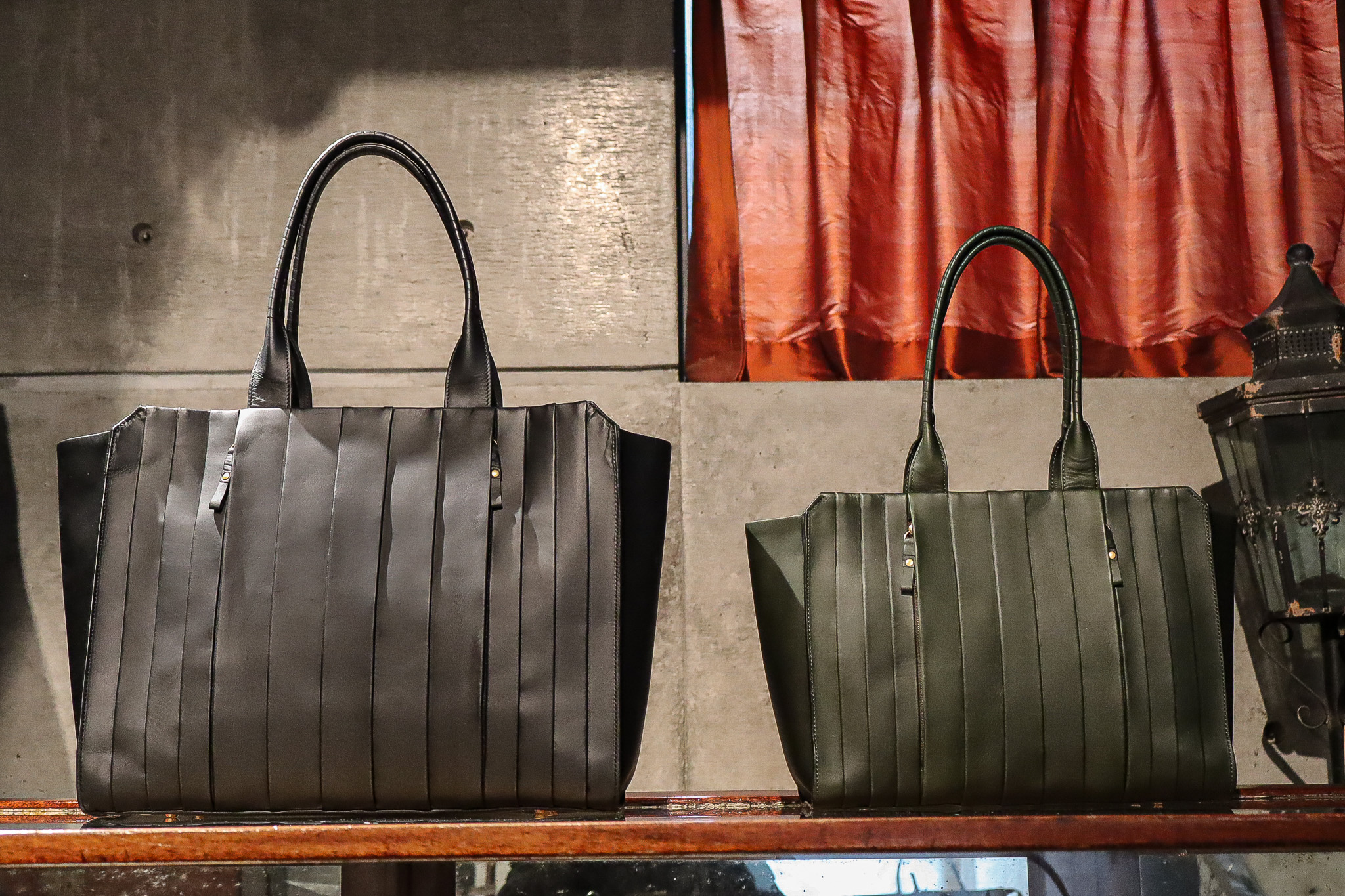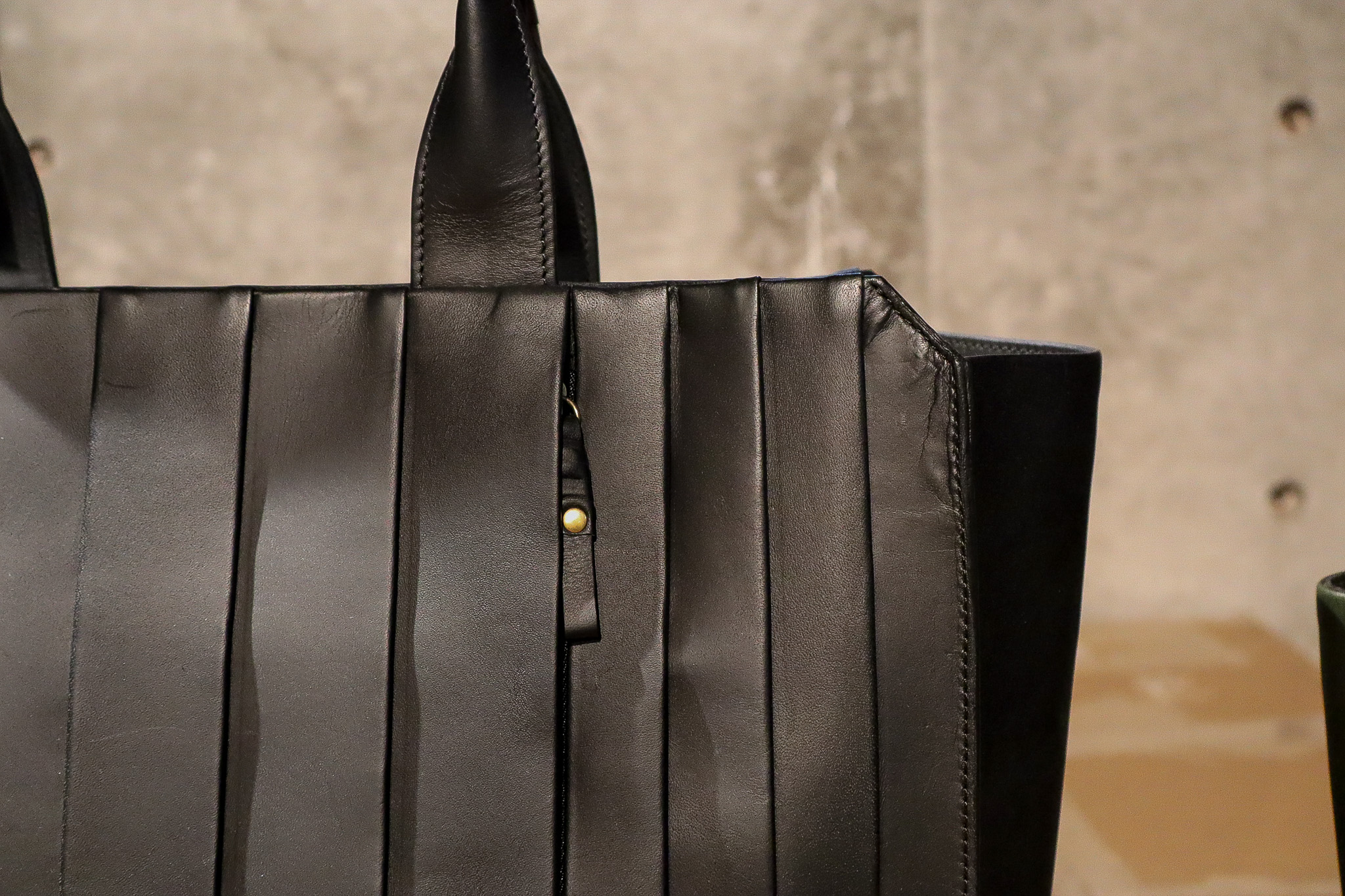 ギャザーの幅はあえて不均一に仕上げ、革の馴染みと合わさることで、素敵な違和感が生まれます。