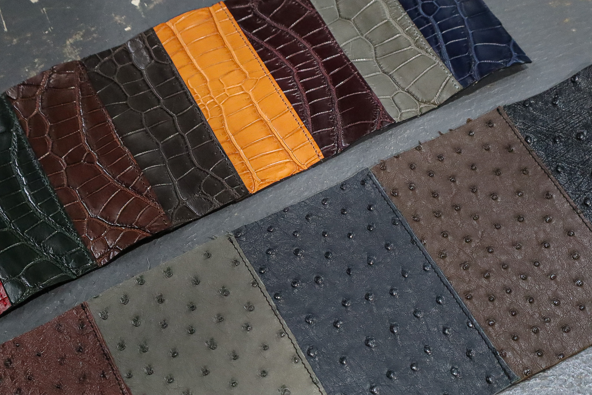 クロコダイル、オーストリッチレザーに関しては、すべての商品オーダーが可能。